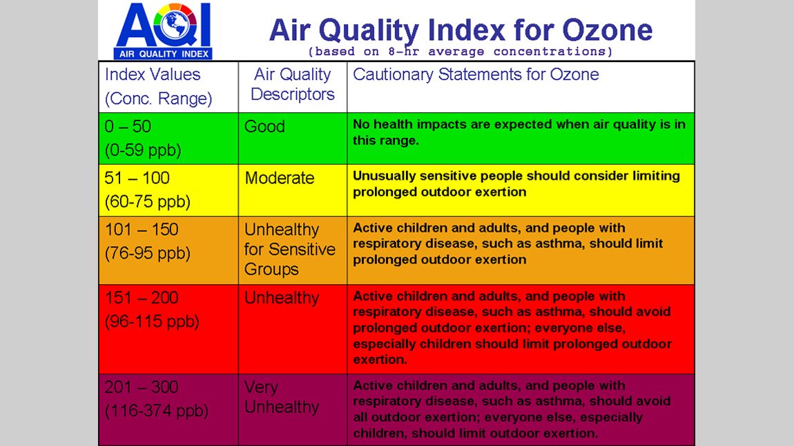There are 2 types of ozone. The “good” ozone is a protective layer in the upper atmosphere and, in the 1970’s, caused serious concern due to the formation of a hole, which was caused by man-made chemicals. Although this hole is now closing, due to regulations implemented by the Environmental Protection Agency (EPA), ground level “bad” ozone levels continue to cause issues with air quality. Ground level ozone is created when a combination of airborne pollutants chemically reacts with sunlight. These pollutants are generated by cars, power plants, refineries and other chemical plants. Ozone levels increase in summer due to the longer and hotter days. The Air Quality Index (AQI) is measured daily across the country with advisories issued based on an AQI range between 0-500. The EPA site allows you to look at current data based on city and state.