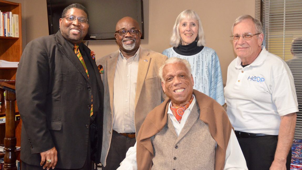 Pictured above (left to right) Cedric Blain-Spain, Councilman Larry A. White, Nancy Anderson, Rev. Dr. Preston L. McKever-Floyd (seated) and Don Kohn.