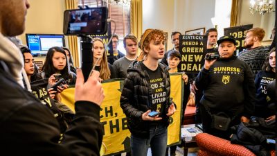 Since 2018, a youthful environmental organization known as the Sunrise Movement have been active in protesting for the adoption of a federal policy known as the Green New Deal.