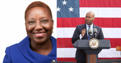 Above: Gloria Tinubu and Jaime Harrison