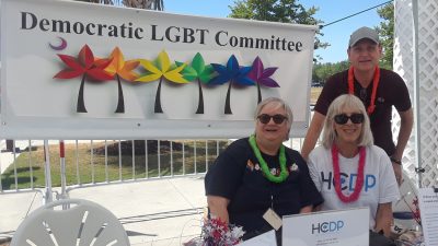 Pictured from left: Patty Hampton, Nancy Anderson and Stefan Varner at Pride in the Park, June 1.
