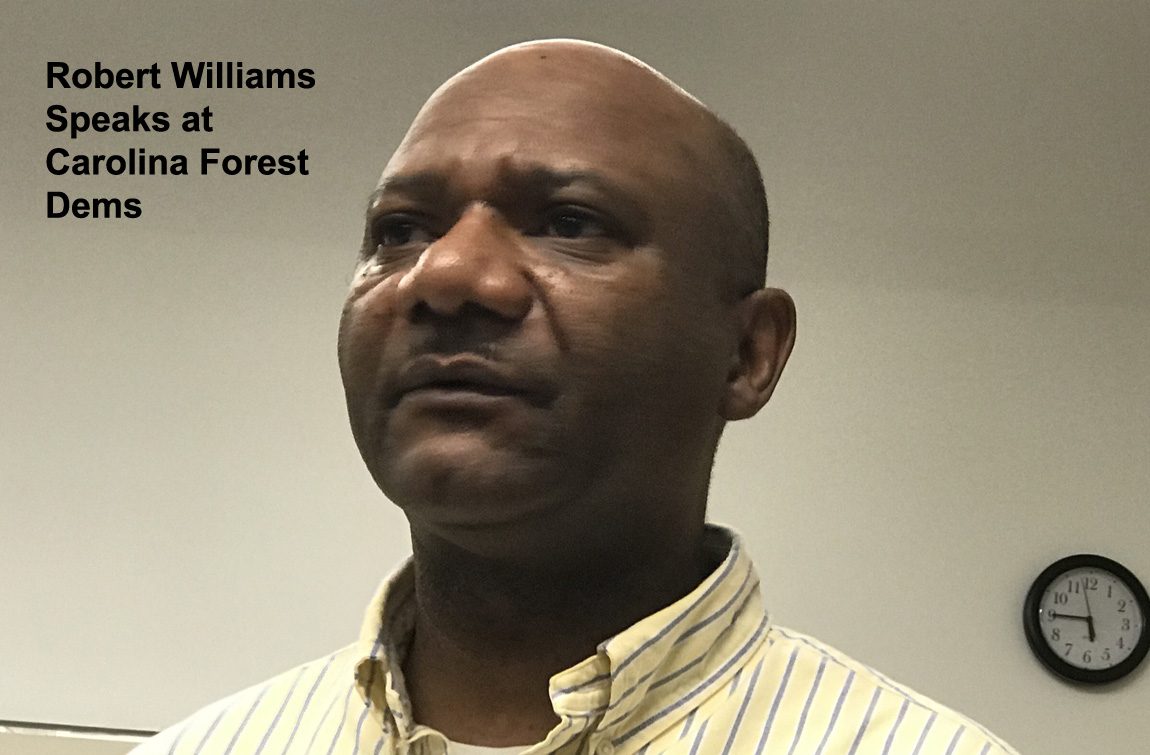 Williams, the 7th District Democratic candidate for Congress, was guest speaker at the Carolina Forest Democrats monthly meeting.